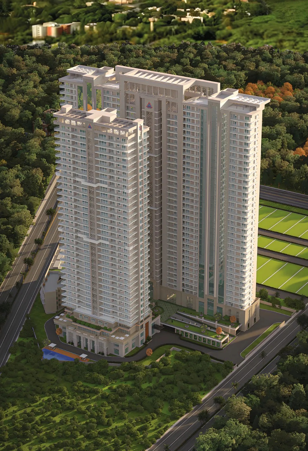 AnantRaj Estate Residences is designed by the internationally honoured HKR Architects of Ireland and reflects neo classical luxury architecture.