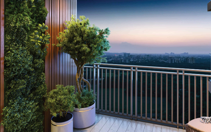 Inside homes include modular kitchen inverter AC provision air filtration and large balconies.