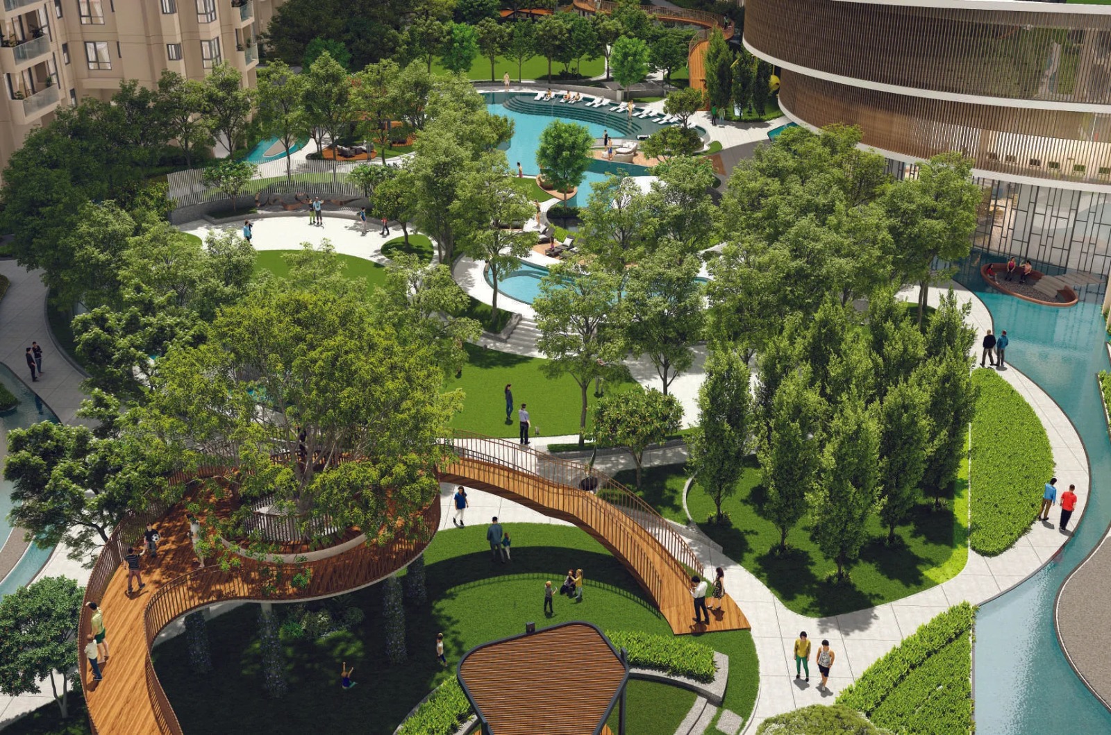 The project focuses on eco conscious planning with open areas wellness zones and modern infrastructure.